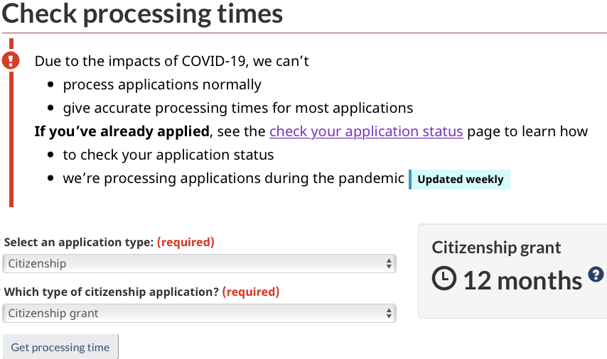 If you have applied for grants of Canadian citizenship, you may have to expect delays in the processing. To check the up-to-date processing time and application status, please refer to IRCC.
