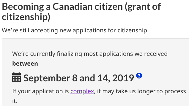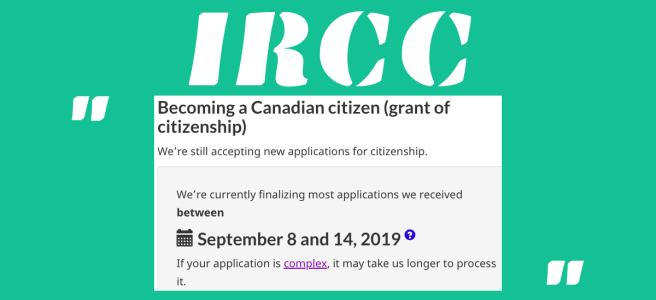 Immigration, Refugees and Citizenship Canada (IRCC) is presently finalizing most grant-of-citizenship applications received between September 8 and 14, 2019. The data was retrieved from the IRCC website on December 26, 2021.