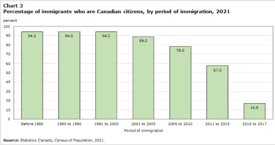 Statistics Canada recently released the citizenship status of the immigrant population from the 2021 census.