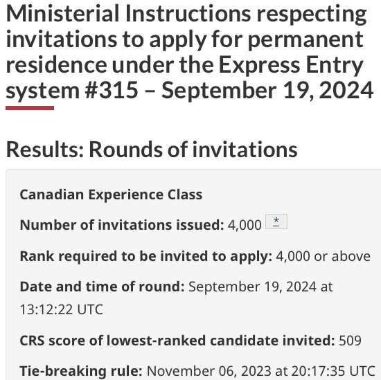 The draw was only open for candidates of Canadian Experience Class and the cut-off Comprehensive Ranking System score was 509.